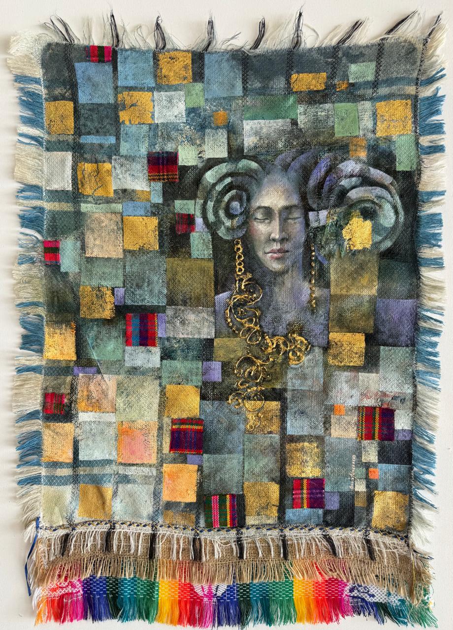 Imagine a Mayan visionary invoking dreamlike portals: her golden